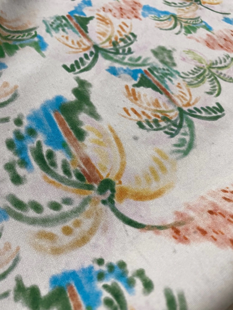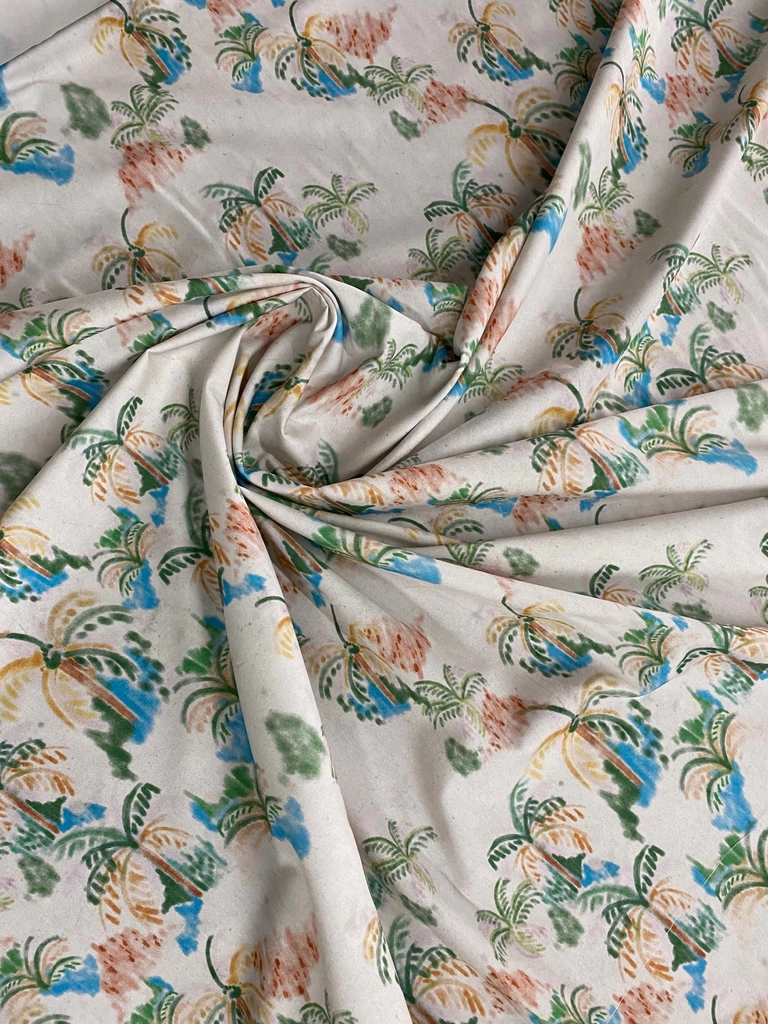 Tecido plano de algodão estampado, macio e encorpado tem uma textura levemente engomada, o nome etiquetado na peça esta como tafeta de algodão então da pra ter uma ideia, leve caimento e baixa transparência. pode ser usado para roupas no geral e artigos de decoração.