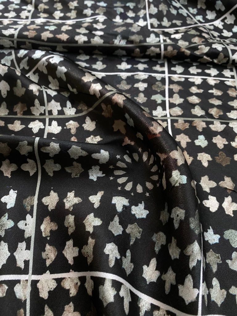 Tecido plano de seda cetim light estampado, light pois é um cetim bem levinho mesmo, textura de cetim e gramatura de um georgete, macia e leve, bom caimento e transparência média.