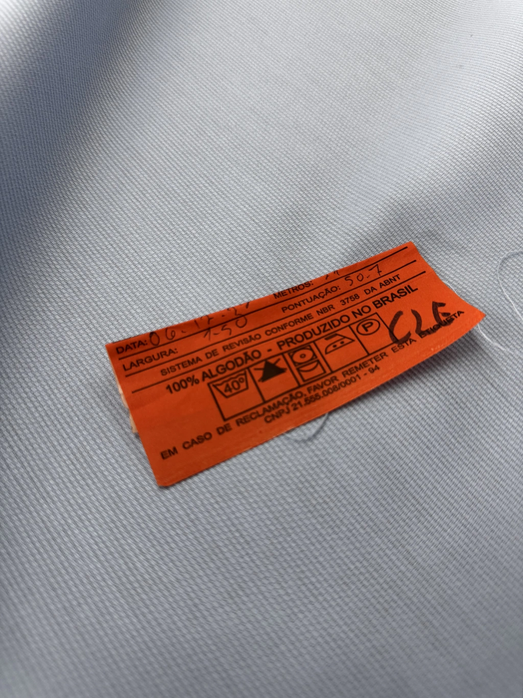 Tecido plano de algodão tipo fustão, tem canais na trama, tipo levemente canelado, tanto que na etiqueta veio como "cotelê" mas não tem o acabamento aveludado, o toque ficou um pouco sequinho, mas que vai amaciando com as lavagens pois é uma das características do algodão, então tem um médio caimento e baixa para média transparência.