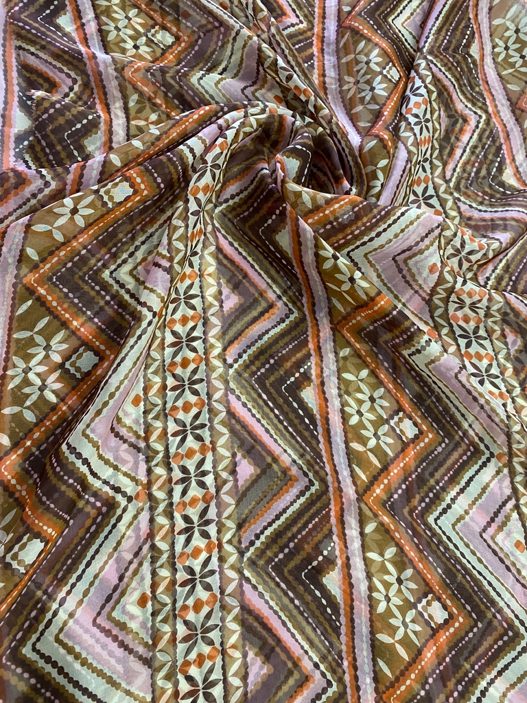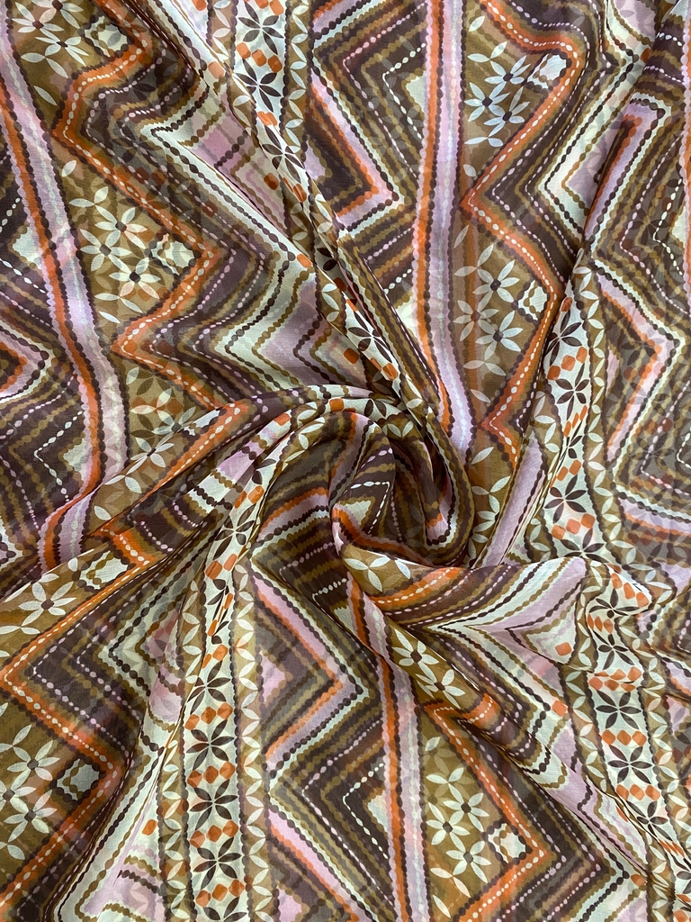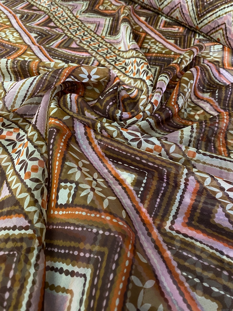 Tecido palha de seda estampada, leve e macia, transparêncial notável e leve caimento.