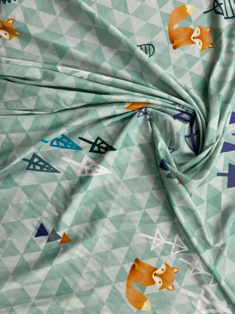 Tecido plano de algodão estampado, macio e leve, bom caimento e baixa transparência considerando o tipo de tecido. Pode ser usado para roupas e artigos de decoração como fronhas e lençóis.