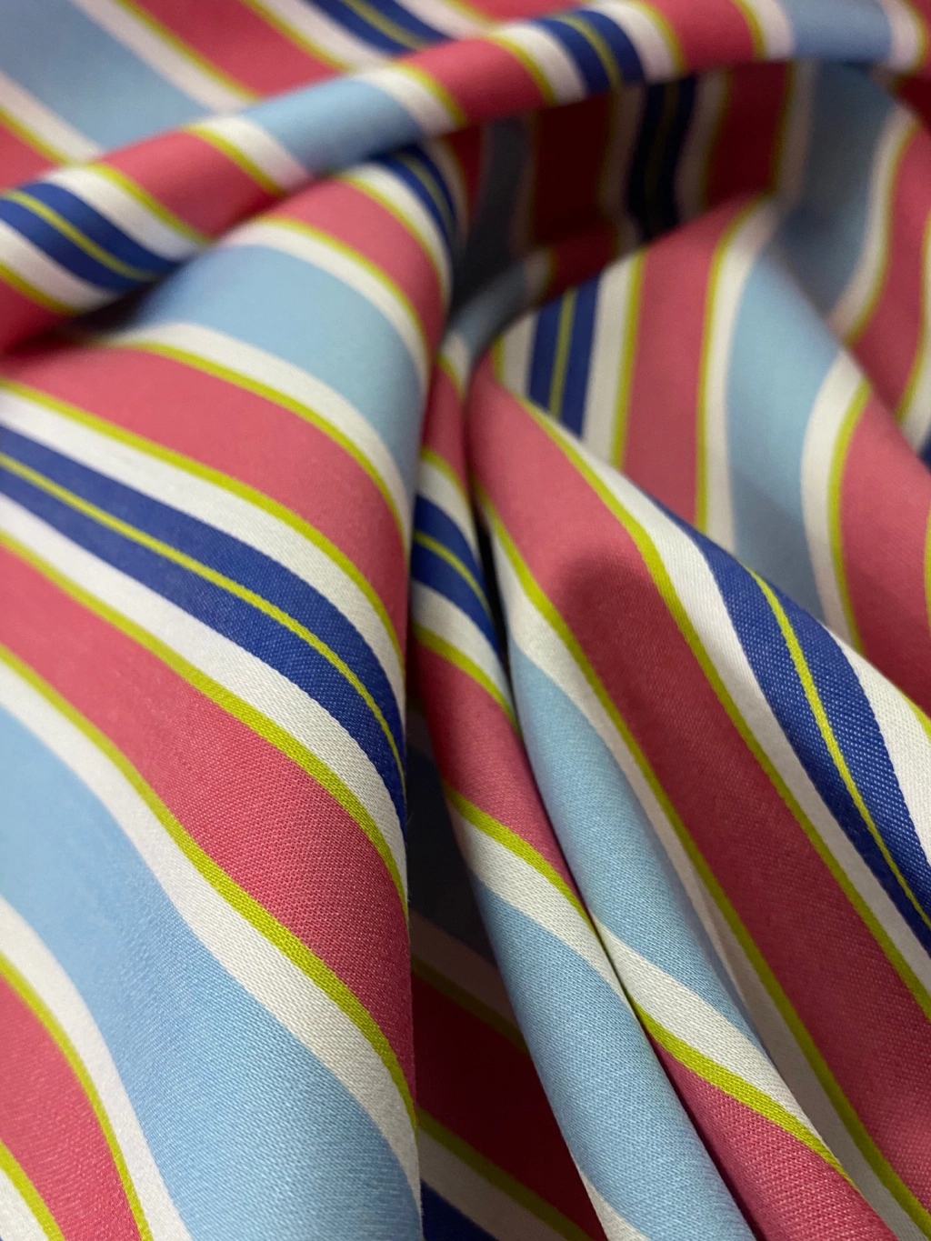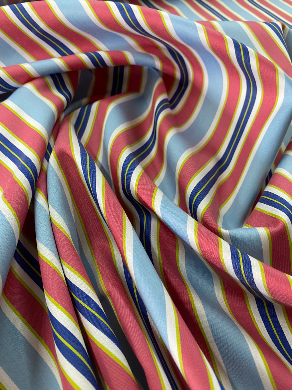 Tecido plano de algodão tricoline camisaria listrado de fio 60/1 tinto, macio e leve, médio caimento e baixa transparência considerando o tipo de tecido. Pode ser usado para roupas no geral como camisas e blusas e artigos de decoração como fronhas, lençóis..